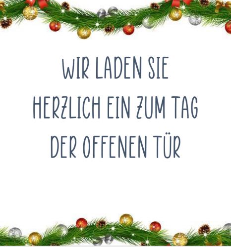 Wir laden Sie herzlich zu unserem Tag der offenen Tür am 08.12.2024 in der Zeit von 10:00 bis 13:00 Uhr ein.